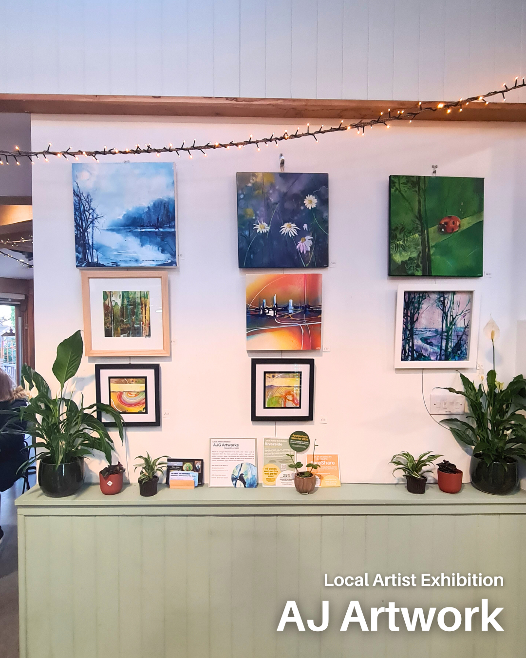 Throughout 2024, we had 8 wonderful artists display their work in our cafe. Thank you for all sharing your love of the artists and we hope your new artwork has found the perfect spot. We offer to display in our space for no fee, helping local artists share their work. For all pieces sold through our exhbition, 75% of the sale goes straight to the artist and the other 25% gets doanted to a local charity. In 2024, this went towards Alive Activities, an amazing charity who help older people in care live their life to the fullest.